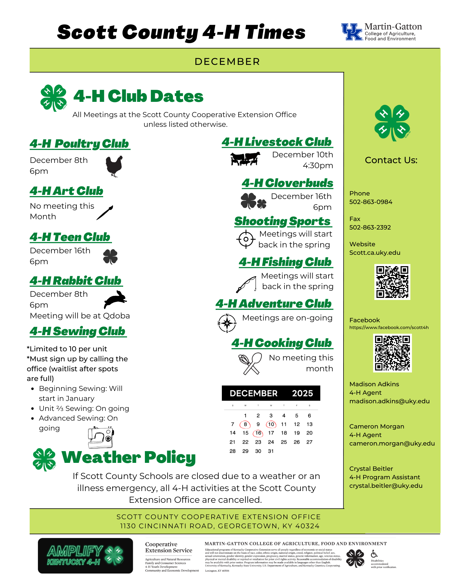 Scott County 4-H December Newsletter 2025 Scott County 4-H December Newsletter 2025 Breadcrumb Home Newsletters Scott County 4-H December Newsletter 2025 December 2025 Edition 4-H Youth Development View Newsletter Share this Newsletter X / Twitter Additional Newsletters Scott County 4-H January 2026 Newsletter December 2025 ANR Newsletter December 2025/January 2026 FCS Newsletter Scott County 4-H December Newsletter 2025 November 2025 FCS Newsletter Preview This Newsletter